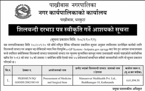 बोलपत्र स्वीकृति गर्ने आशयको सूचना l