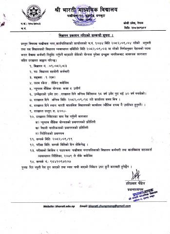 श्री भारती माध्यमिक बिद्यालयले बिज्ञापन प्रकाशन गरिएको सम्बन्धी सूचना l