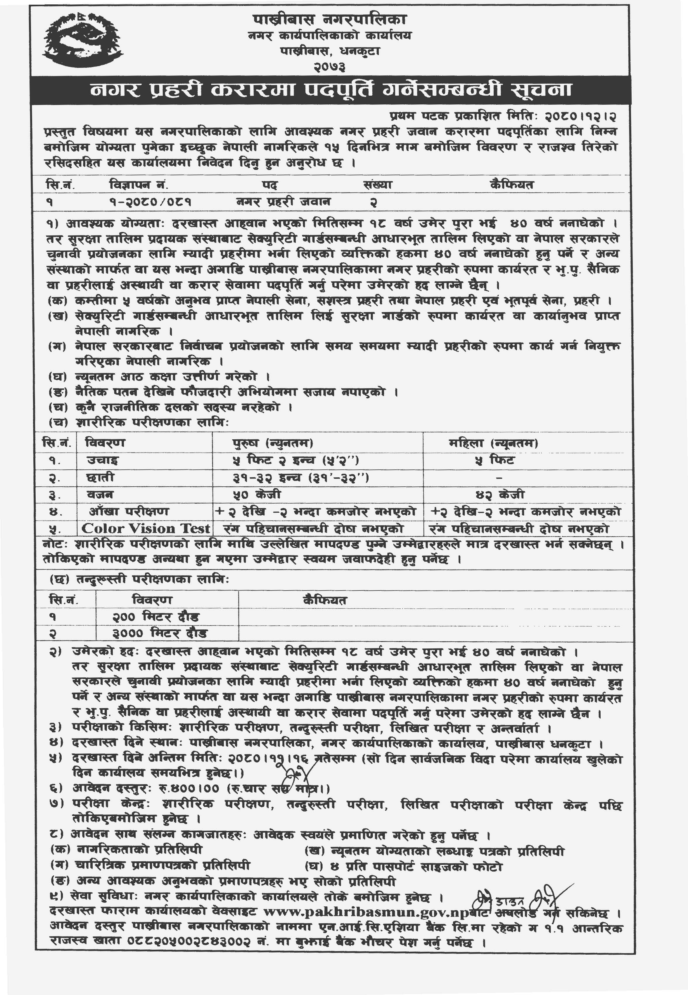 नगर प्रहरी करारमा पदपूर्ति गर्ने सम्बन्धी सूचना