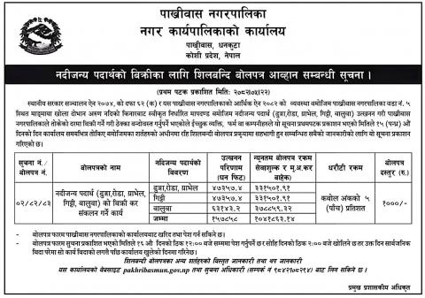 नदीजन्य पदार्थकाे विक्रीका लागि शिलबन्दि बाेलपत्र आह्वान सम्बन्धी सूचना ।