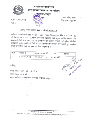 » परीक्षा तालिका प्रकाशन गरिएको सम्बन्धमा l