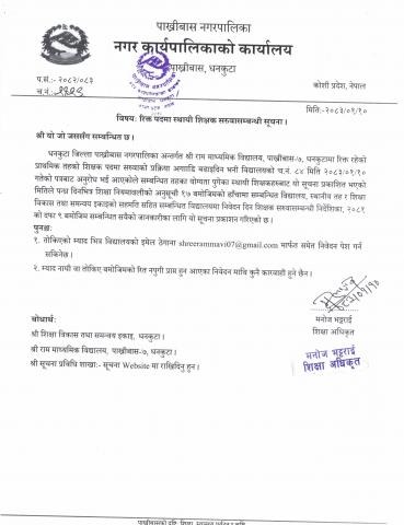 रिक्त पदमा स्थायी शिक्षक सरुवासम्बन्धी सूचना l