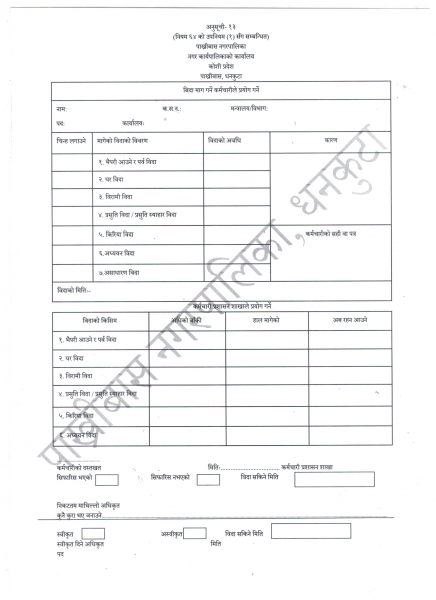 बिदा माग गर्ने फारम